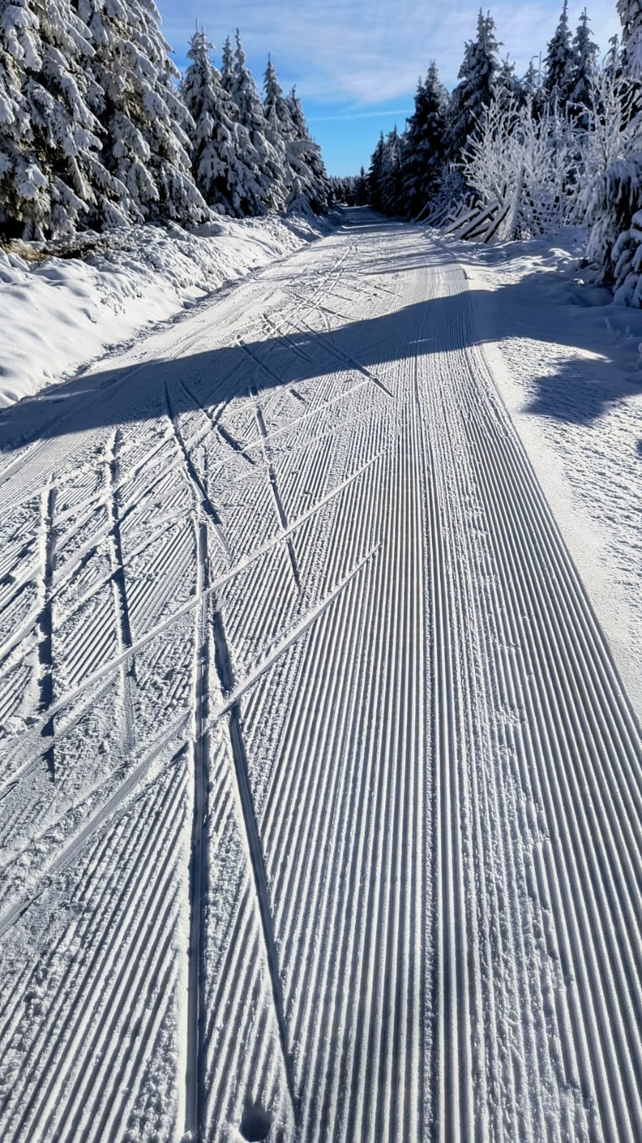 Dnes vyjela rolba na úpravu běžeckých tras. Na hřebenech jsou trasy zledovaťelé. Čekáme na sníh.