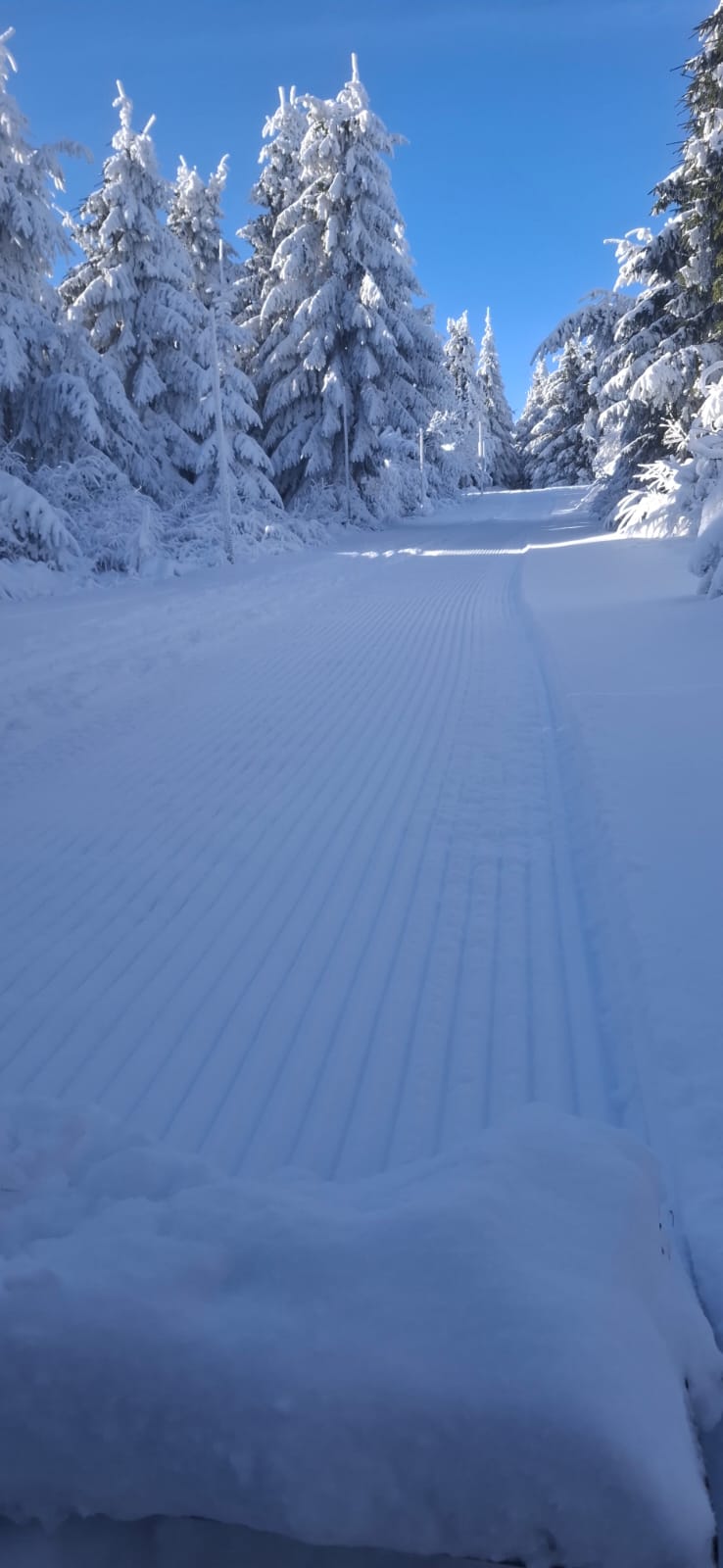 27.01.2026 12:22Vzhledem k příznivým podmínkám dnes proběhla na hřebenu Orlických hor první úprava stop pro běžkaře, zatím jen čtyřkolkou s finišérem (na rolbu je zatím málo sněhu). Upraveno je od nástupu hájovna sedlo Šerlich- Velká Deštná -Jelenka-Lusino údolí- Homole- pěticestí- Komáří vrch. Výška sněhu 15cm. Prosím pěší návštěvníky,aby nevstupovali na upravené trasy.